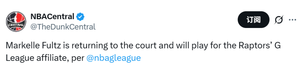 目前,富尔茨将为猛龙905补充阵容深度——这支球队在过去一周因多名球员被NBA球队征召而深度受损,朱利安-里斯、奥利维耶-萨尔、大卫-罗迪均与其他NBA球队签下双向合同。